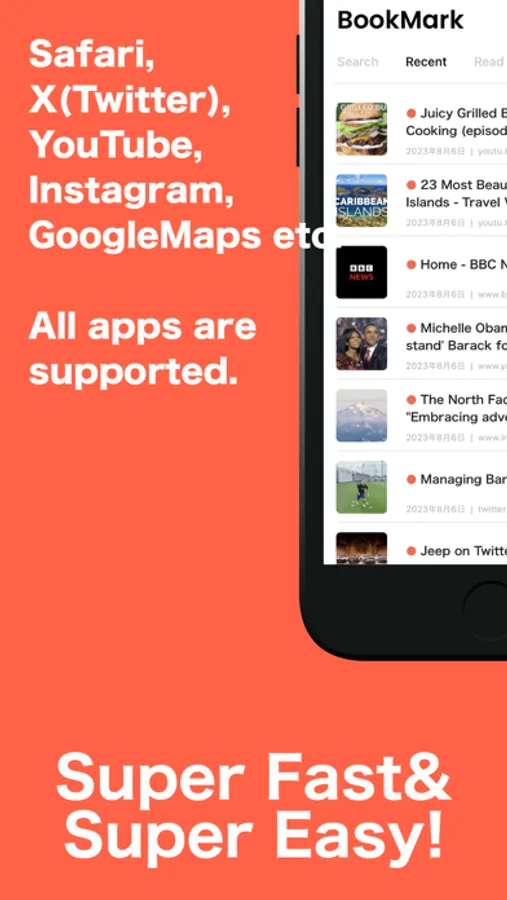 Bullet Bookmark is a bookmarking application that allows you to manage your "favorite posts" and "information you like" on all kinds of applications such as news, blogs, websites, X (Twitter), Instagram, YouTube, Google Maps, Tiktok, etc., in one place.