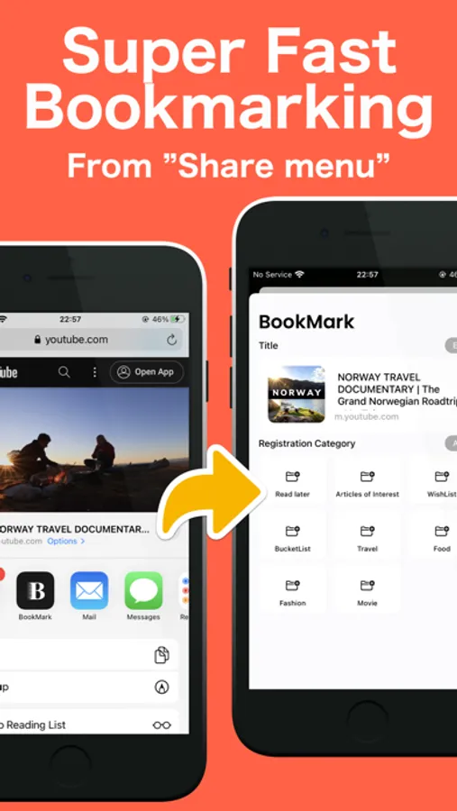 All categories are displayed in a list when you select the share menu, so you can quickly register bookmarks with "one tap" without troublesome operations.