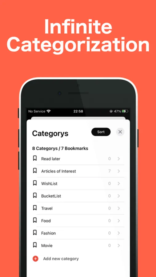 You can create an unlimited number of categories with any name you like. You can create and manage categories with any name you like, such as articles you are interested in, gourmet foods you want to try, places you want to go, things you want, hobbies, and so on.