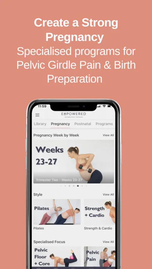 An expert-led week by week program for every single week of your pregnancy and postnatal journey plus expert education and specialised workouts for when you need them most.