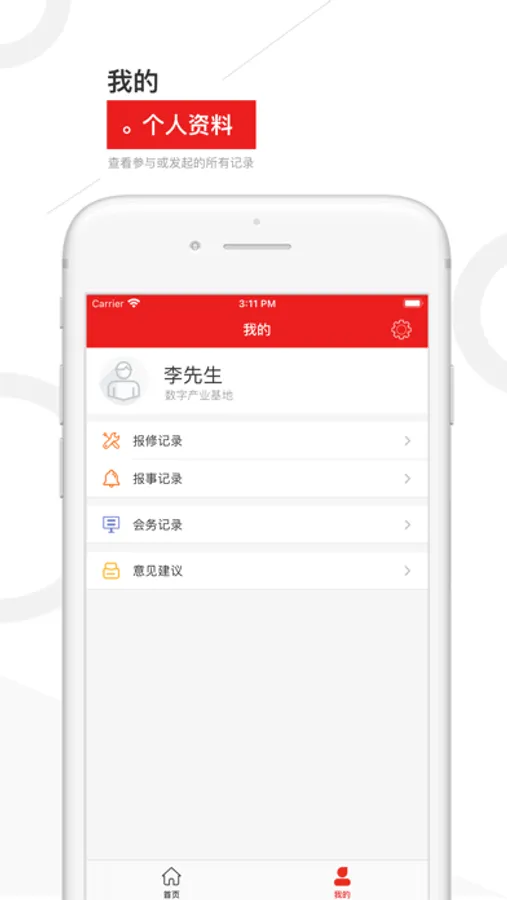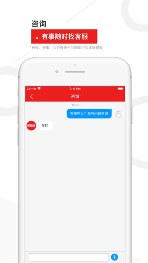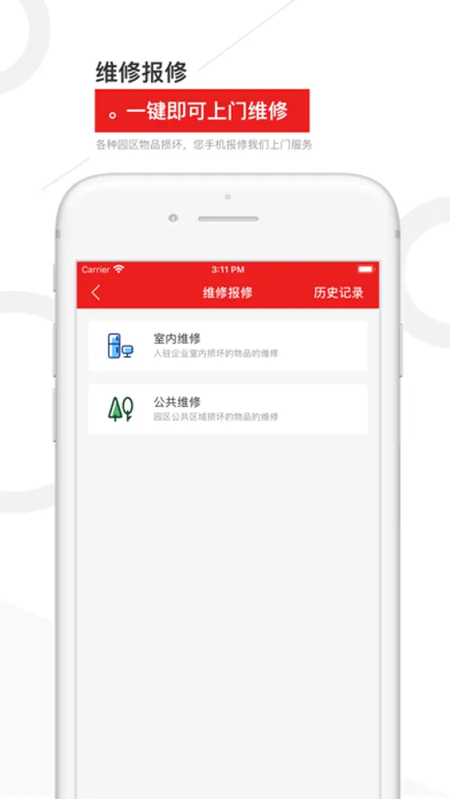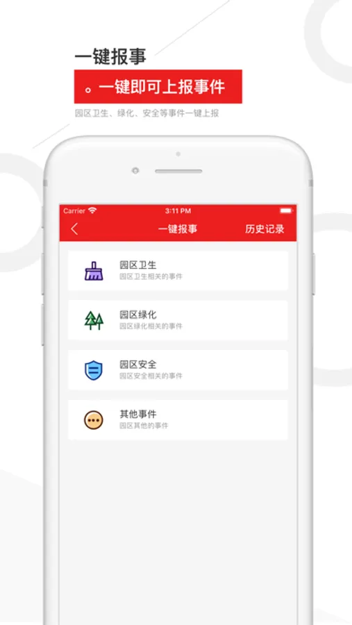 3.一键报事:App上报事,足不出户,服务人员马上上门处理!