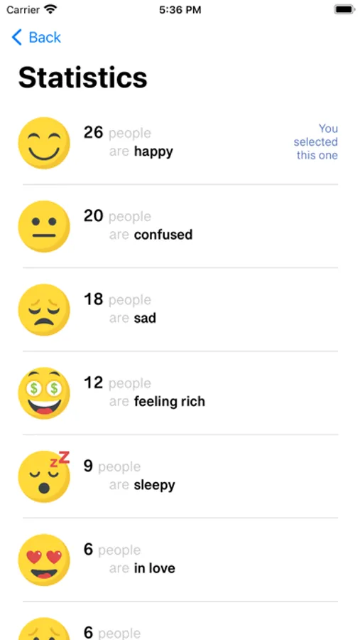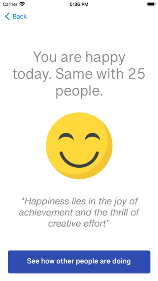 This app allows the user to see how other people are feeling. It also displays a quote that is relevant to the emotion that he/she has selected.