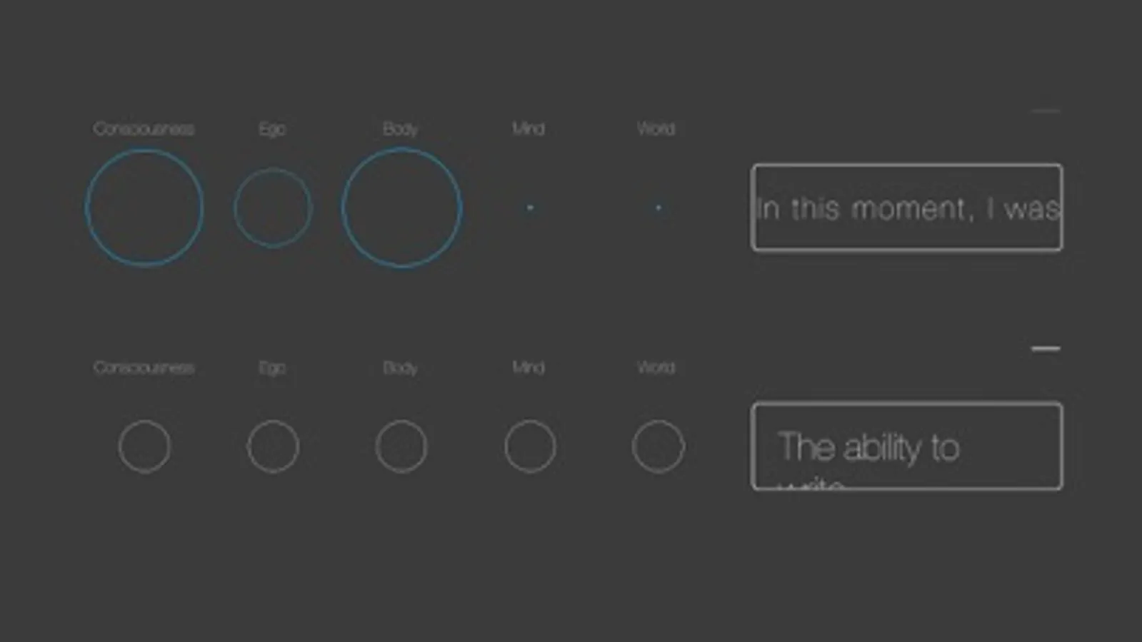 Through a series of scaleable circles we can identify where our attention is at any moment. We can visualize if we are in balance, uplifted, and harmonious or in a state of suffering.