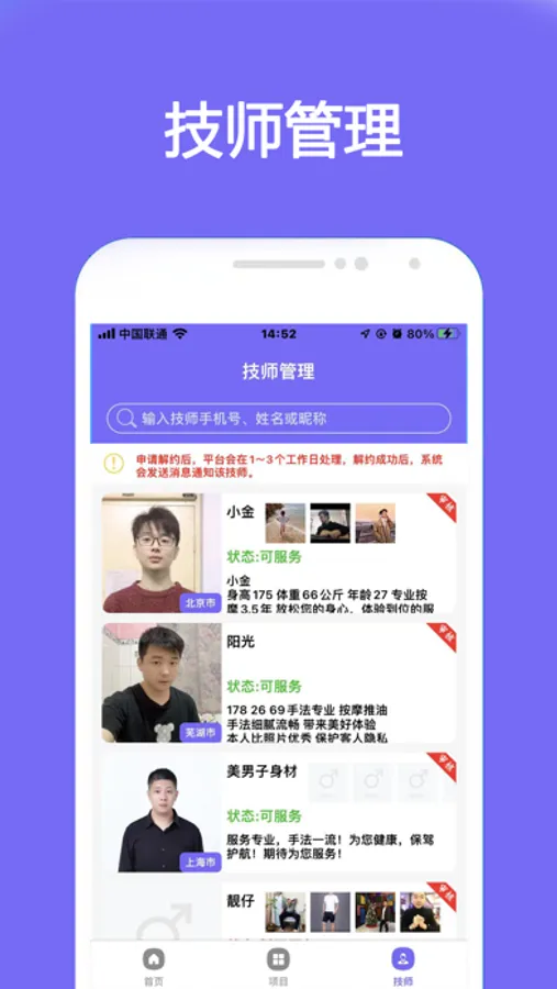 让商户更方便管理技师,致力于商户提升线上接单能力和处理订单能力