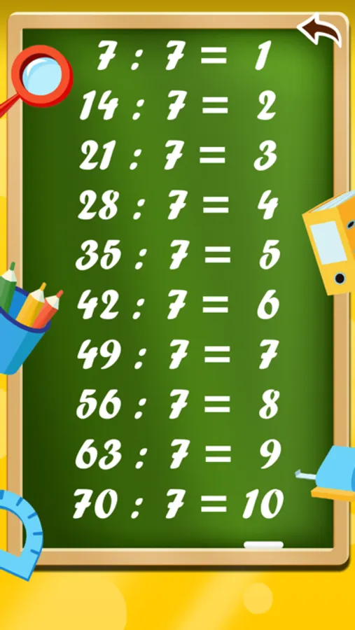 Division table is multiplication in reverse. The best way to learn the division chart is by playing. Can be fun to play with a friend. The best grades in school will help you get this app.