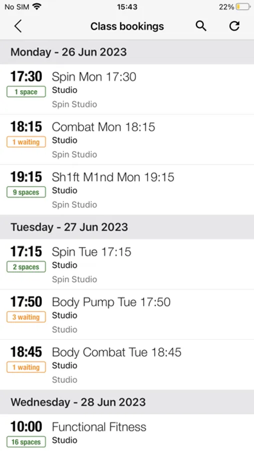 FITNESS CLASS BOOKINGS