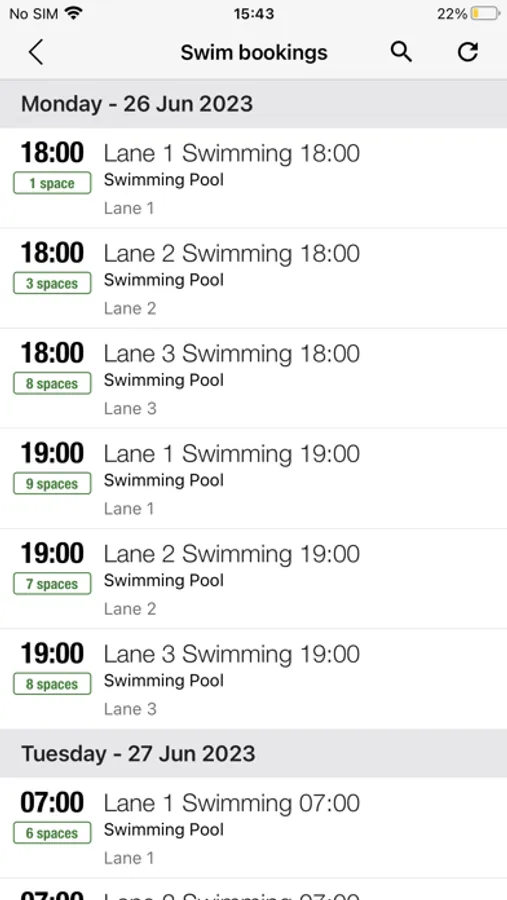 Get real-time access to your centre’s timetable for public swim sessions.