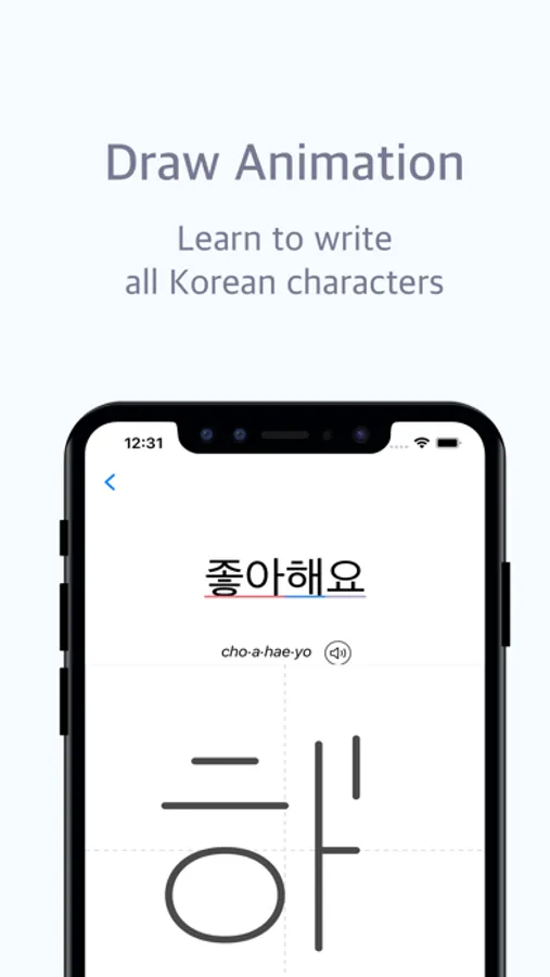 - Animates how the Korean characters are written