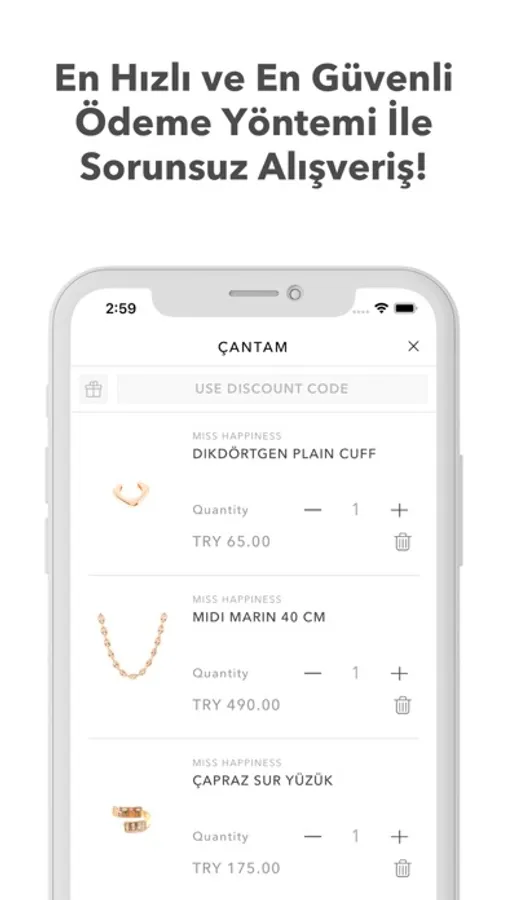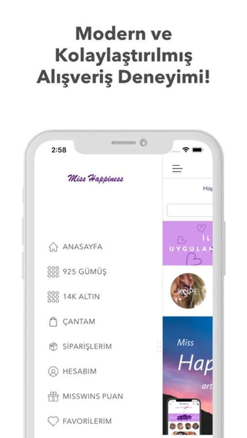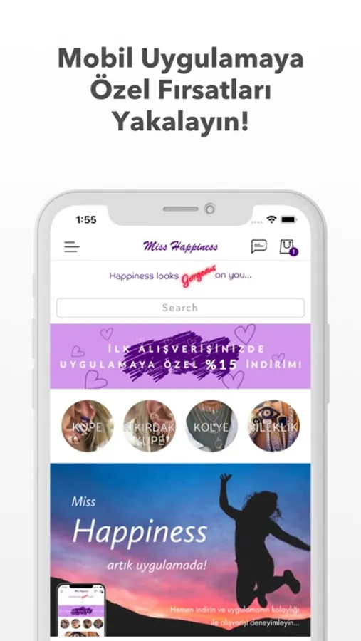 Miss Happiness alışveriş deneyiminizi daha da ileri taşımak için artık yepyeni bir kanalımız var. Tüm koleksiyonlarımıza ve ürünlerimize ulaşmak uygulamamız ile çok kolay. 925 Gümüş ve 14K Altın koleksiyonlarımızın tamamı uygulamamızda! Tüm ürünlere ulaşmak, uygulamaya özel indirimlerden ve önceliklerden faydalanmak ve yeni eklenen tüm ürünlerden ilk haberdar olmak için uygulamamızı indirin.