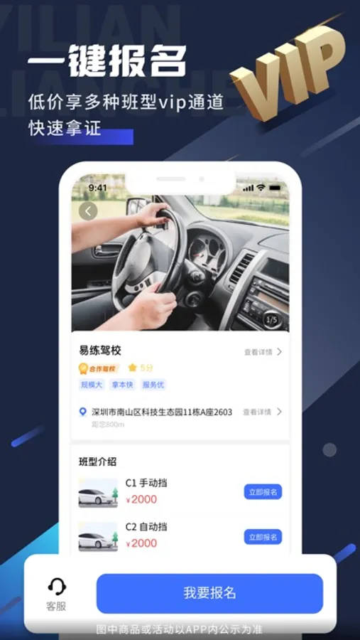 不会选驾校?上易练!大数据一键对比,教您如何识别驾校!多个驾校、多种证照、多种价格自主选择,费用公开透明,绝无隐形收费。早6:00~晚22:00 (上班前、中午休息、下班后) 想练就练,周末节假日练车不排队。综合性推荐距您5公里范围的优选驾校实现就近练车,场地不限。