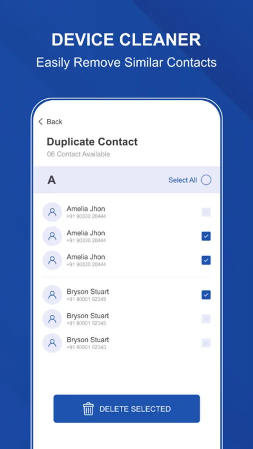 Release the storage from contacts list by deleting incomplete contacts from your device