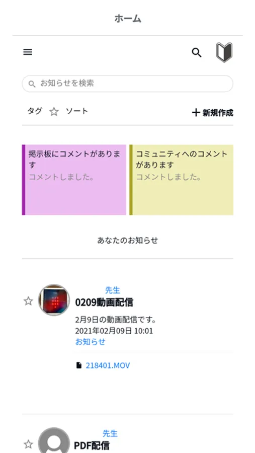 ・お知らせ、文書ファイル、映像ファイル、音声ファイルを配信できます。