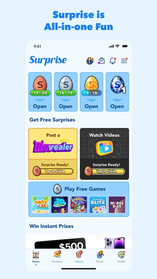 Get amazing *real-life* Surprises from brands you love, and discover brands you're about to love! Send and get Surprises from friends, play games, watch videos from your favorite content creators, and more.