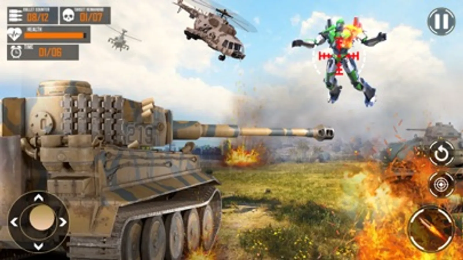 You need to enter the massive army war tank and take control on it. Take a perfect aim and press the fire button. Feel the experience of rush and daring atmosphere WW2 tank battle. This game more epic and more engaging when you press the tank transformation button and you see the huge giant war battle tank convert into heavy battle war robot with amazing heavy weapons. Control the war tank robot with joystick and defend your army. Drive the US army war tanks machines and feel the immensity and power of these battlefield war vehicles. Extreme deserted environment and detailed army base camp looks like real battle experience. Show your US army tank driving skills by driving massive heavy machines and proof that your are epic military commander of your troops. Different military army tanks for driving. Multiple deadliest war missions for complete and much for waiting for you soldier. What you waiting for Go and grab your mobile devices & mobile and download the Army Tank Battle War Machines: Free Shooting War Game. #1 Tank shooting and driving game of App Store