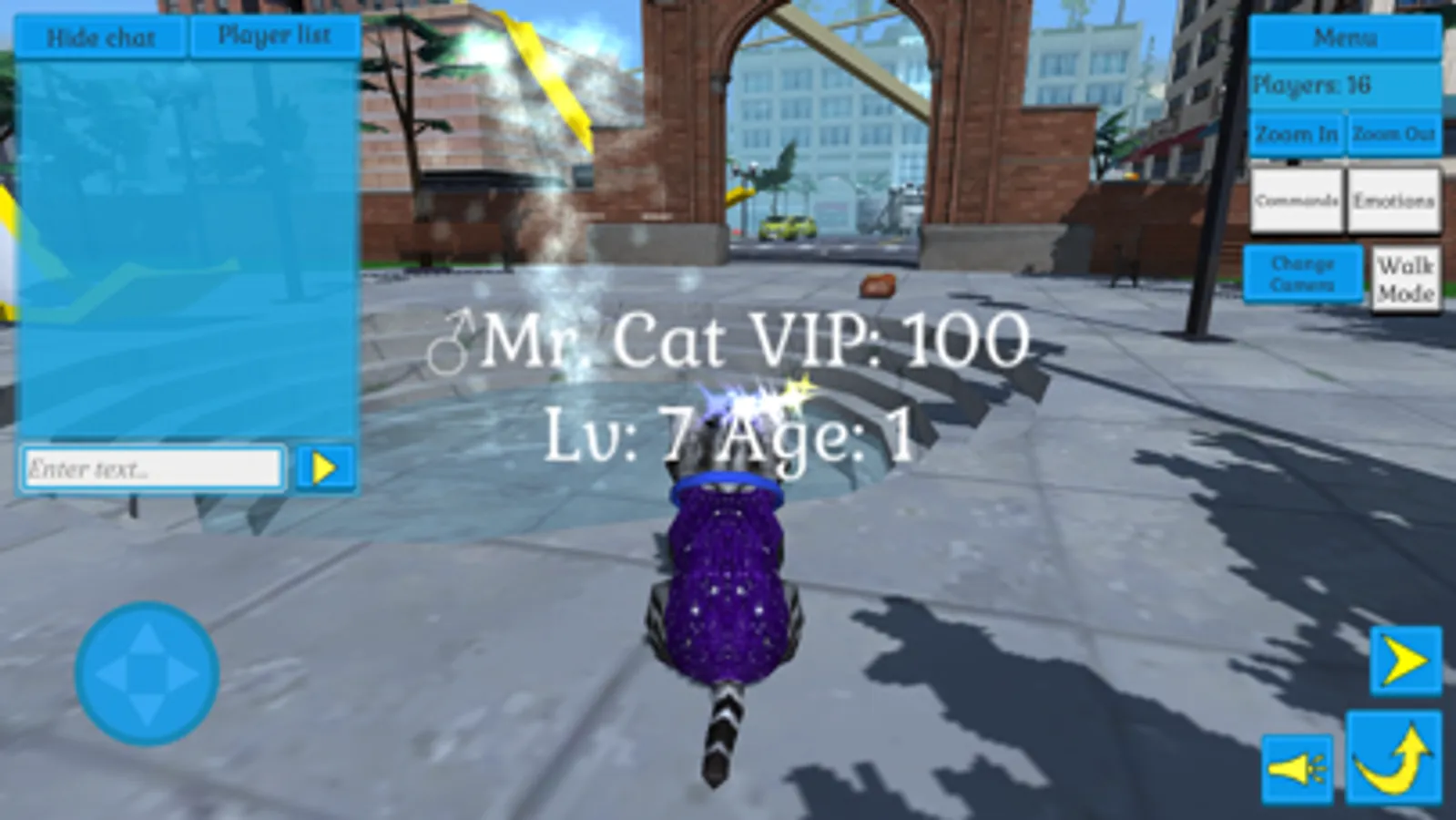 Besides you can play mini-games, take a part in competitions, OnLine chat or fight in OnLine Arena in Rock, Paper, Scissors mini game. You will meet other players' kittens and puppies In OnLine town. You can chat with them and run together. Once you get tired, you can come back home whenever you want.