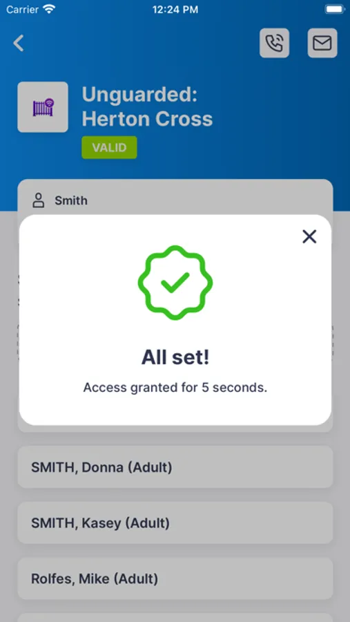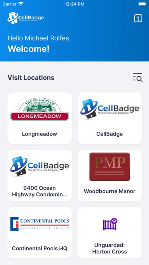 The CellBadge mobile application allows anyone registered and approved for access to open doors or gates from their own mobile device. Users may review their access status, see all the locations they are approved for access and be instantly granted access.