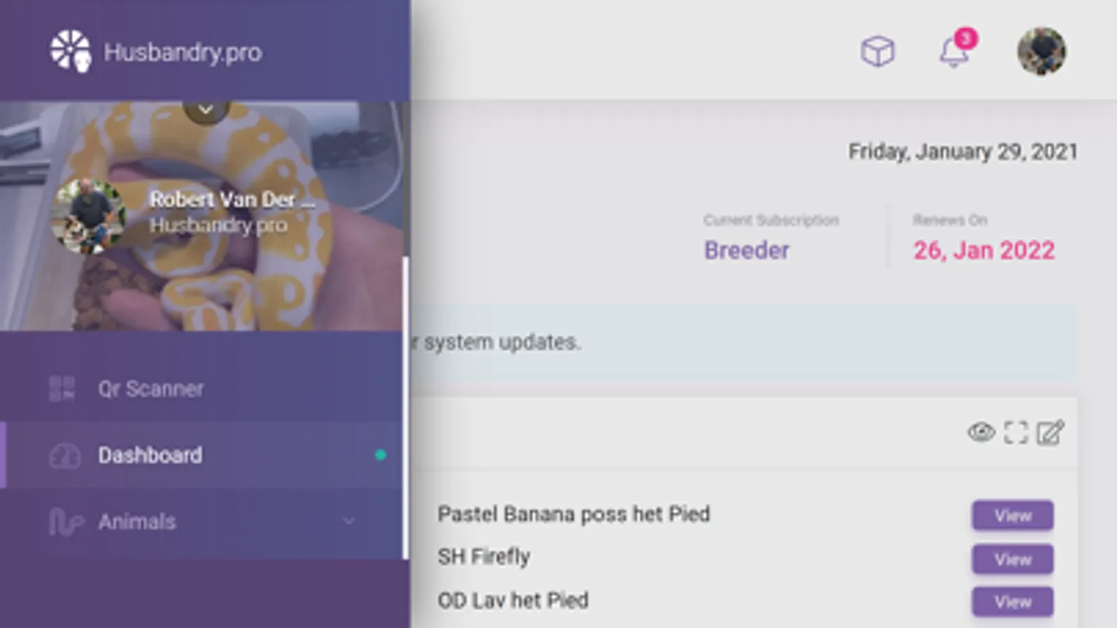 Designed to assist you in keeping proper husbandry records. Most features can be turned off, so you aren't bombarded with a system that is too complex to use effectively.
