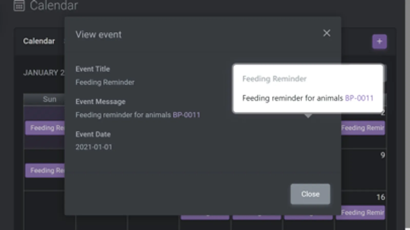 ∙ Feeding reminders that are configurable per animal. The system also creates a feeder pick list for you.