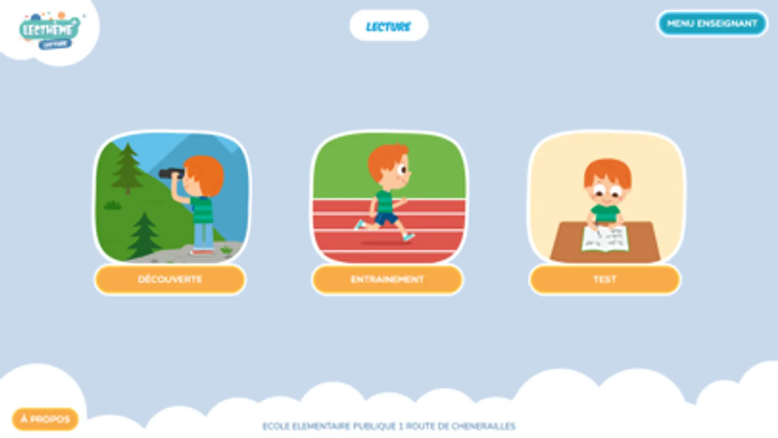 Le menu enseignant permet de modifier les paramètres de l’application.