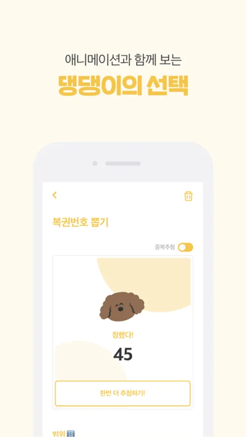 숫자뽑기 - 당신이 설정한 범위의 숫자 중 하나를 댕댕이가 랜덤으로 선택합니다. 복권번호, 추첨번호 뽑기 등 필요한 때 자유롭게 만들어 사용해 보세요!