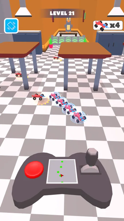We have to get our cars out of the room, find them with the help of navigation and avoid obstacles. You can accelerate and maneuver with the nitro button.