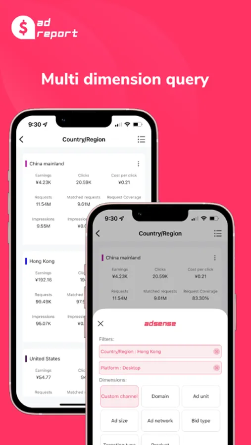 Ad report comes from the demand that individuals often need to check their own website advertising revenue effect and display effect, so as to analyze and optimize advertising display strategies to improve revenue. Therefore, I integrate these common functions and requirements so that I can quickly view and instantly understand the advertising and revenue status through the mobile app. It is also for this reason that the application itself has the potential ability of effect analysis and comparison in addition to query. At the same time, due to its own needs and the exploration of Google AdSense and AdMob related businesses, the application will gradually expand more modules for analysis and query business. Make the application more powerful and convenient, and hope to help you get more advertising revenue.