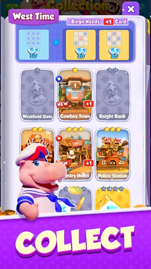 Complete the challenges and unlock the cards sets with different ratings. Collect a whole set of cards can win Spins so that you can still go on your adventure exploration.