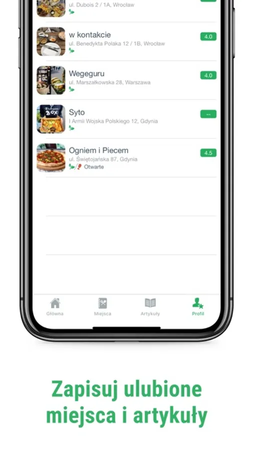 * Zapisuj ulubione miejsca i artykuły w swoim koncie