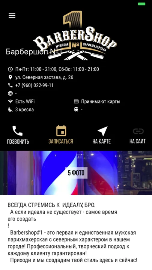 Barbershop №1 – это первая и единственная мужская парикмахерская с северным характером в нашем городе. Профессиональный, творческий подход к каждому клиенту гарантирован!
