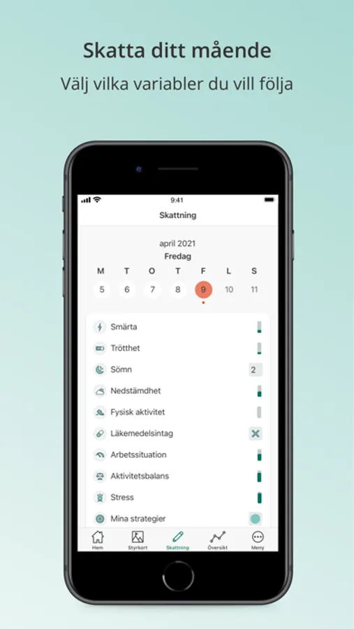 - registrera ditt mående och din arbetssituation dagligen och lär dig mer om vilka vanor som får dig att må bättre eller sämre