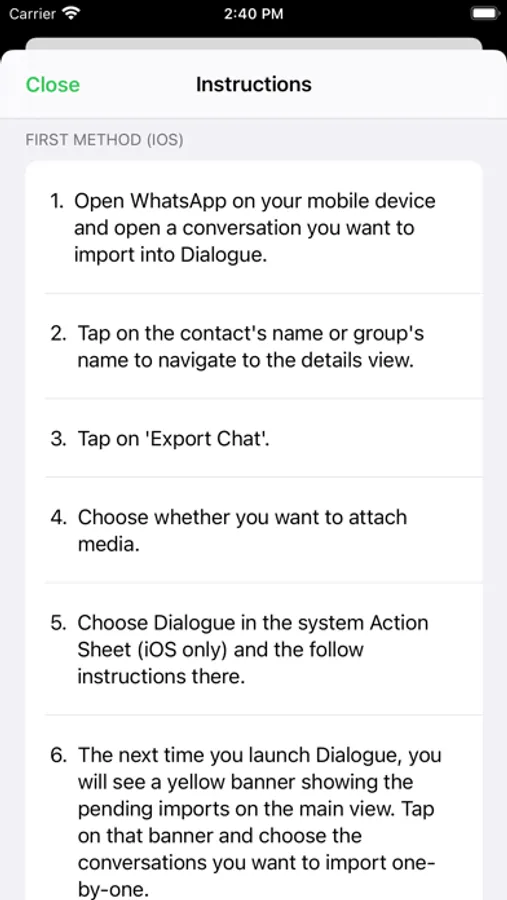 Dialogue works across your iOS, iPadOS, and macOS devices and syncs the imported chats across these devices using iCloud.