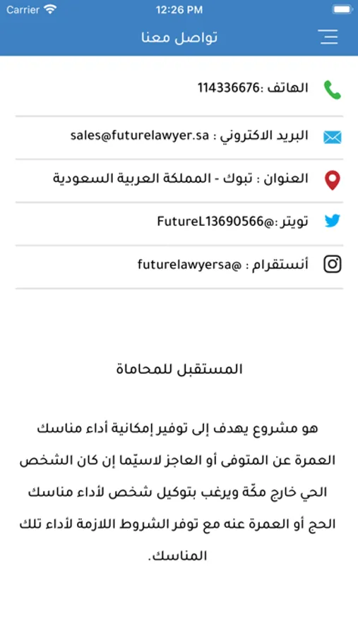 المستقبل للمحاماة والاستشارات القانونية منذ تأسيسها في الرياض، بتقديم خدمات المحاماة والاستشارات القانونية المتميزة والتي تحقق أعلى معايير الجودة، حيث نوفر لعملائنا مجموعة متكاملة من الخدمات المتنوعة التي تلبي كافة احتياجاتهم القانونية بالاعتماد على نخبة من أفضل المحامين والمستشارين القانونين المتمرسين في العمل القانوني وأصحاب خبرة عملية واسعة وتراكيمة في مجالات متعددة لمهنة المحاماة، وحسب أفضل وأحدث أسس العمل المهني.