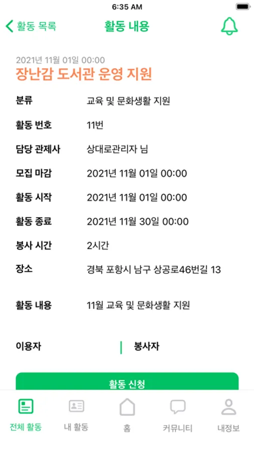 모든 서비스는 "활동"을 기준으로 이루어집니다. 하나의 활동이 등록이 되면, 해당 활동을 관제사가 통제하게 되고, 어플리케이션 사용자들은 활동에 등록하거나 신청함으로써 서비스를 이용할 수 있습니다.