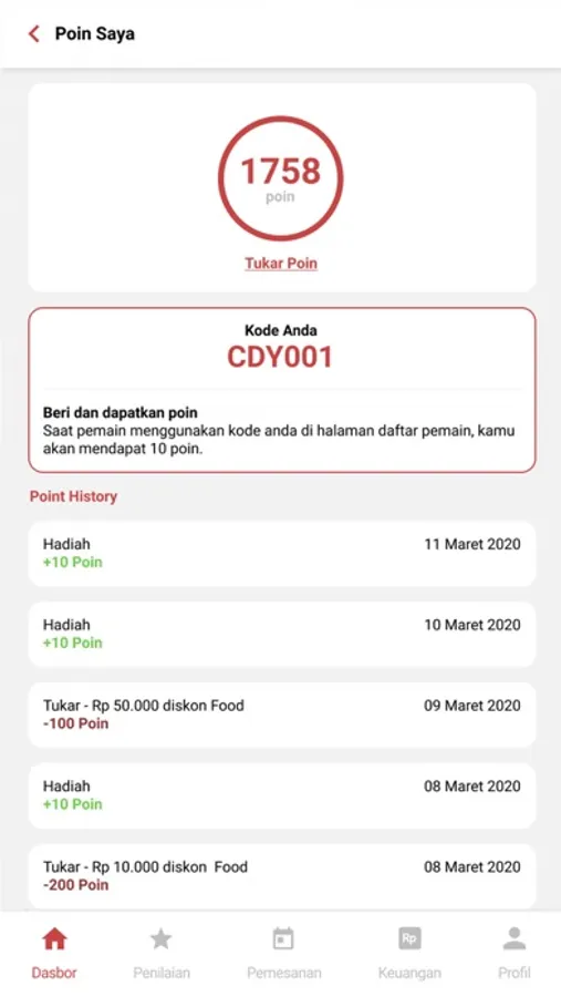 - Point system and reward exchange for caddy