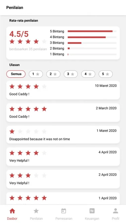 - Give ratings to caddy