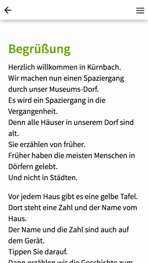 Die offizielle App des Oberschwäbischen Museumsdorfs Kürnbach mit Multimediaguide in Leichter Sprache macht die Geschichte lebendig und führt Sie auf eine Zeitreise durch die Geschichte Oberschwabens. Entdecken Sie das einfache und vielfältige Leben früherer Zeiten und besuchen Sie Häuser aus sechs Jahrhunderten: vom mittelalterlichen Bauwerk aus dem Jahr 1499 über stolze Strohdachhäuser aus der Barockzeit hin zu Gebäuden der jüngsten Vergangenheit. Die App bietet neben dem Multimediaguide alle Informationen rund um Ihren Besuch, wie Öffnungszeiten, Preise, Routenplaner und vieles mehr.