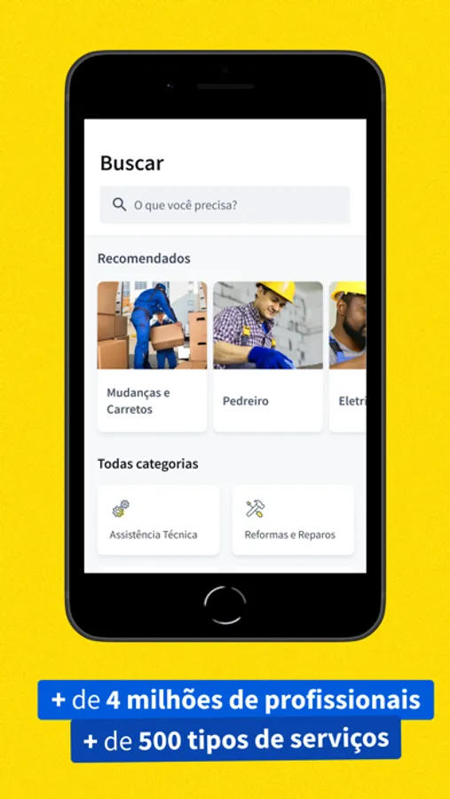 Nesse aplicativo, específico para clientes, você poderá não só fazer o seu pedido da palma da sua mão, mas também consegue ver a avaliação dos profissionais. E o melhor, você consegue negociar valores diretamente com o prestador de serviços.