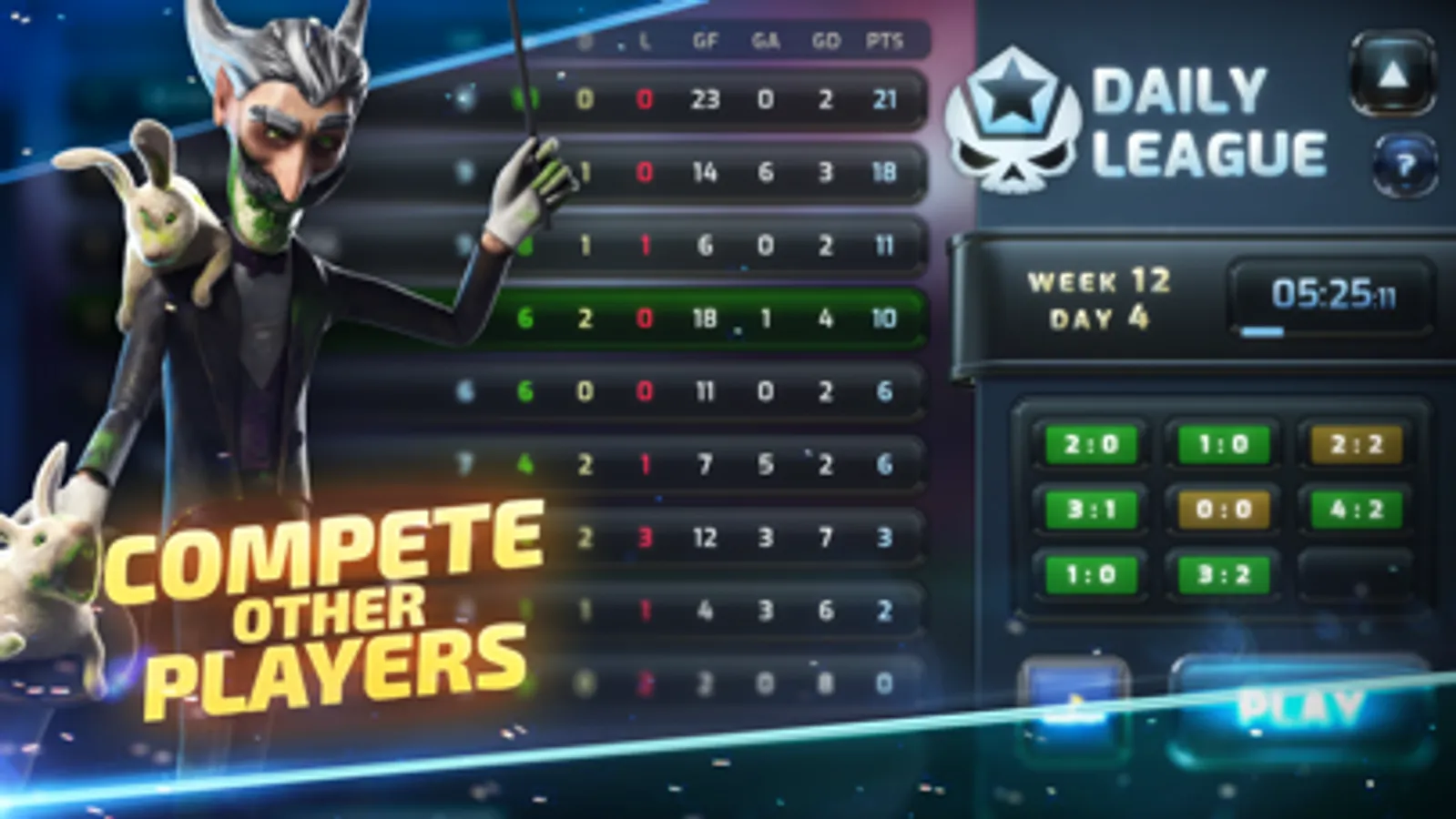 ● Play Daily League Matches, climb up the higher Leagues and play in fantastic Arenas