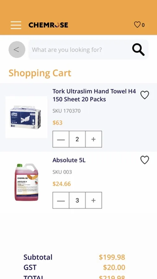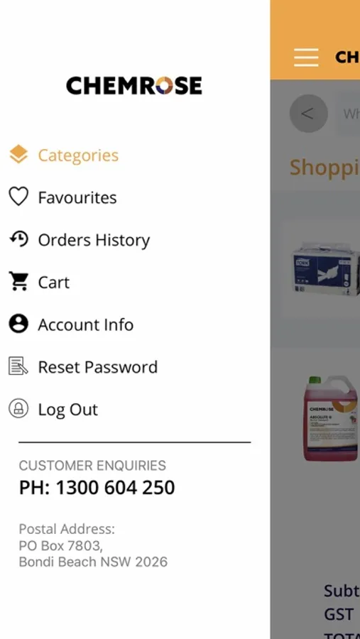 The Chemrose app enables customers to order products easily from their mobile phone. Features include save to favourites, view order history, reorder from past orders.