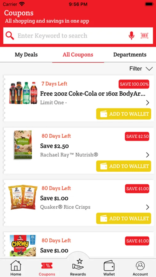 2. Adding coupons and specials to your wallet and