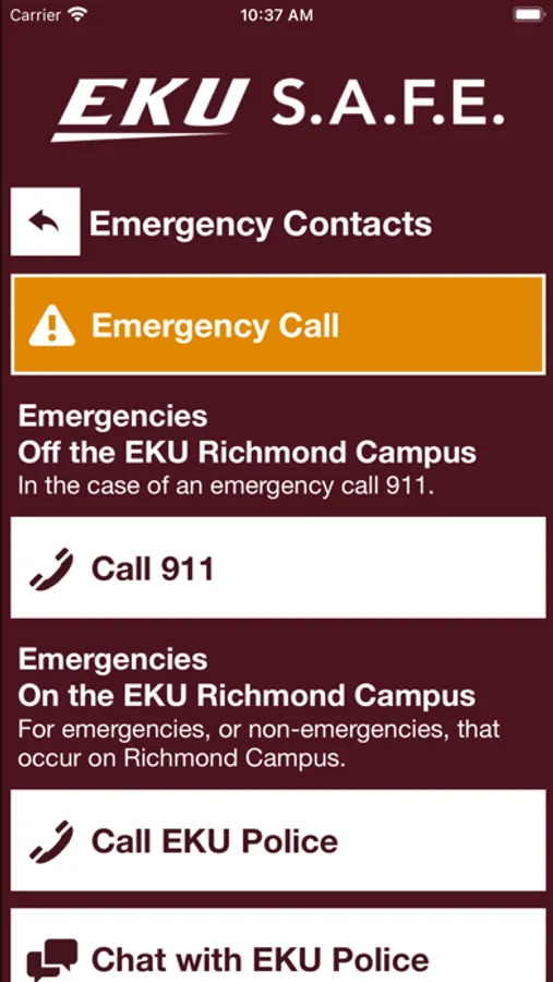 - Safety Notifications: Receive instant notifications and instructions from Eastern Kentucky University safety when on-campus emergencies occur.
