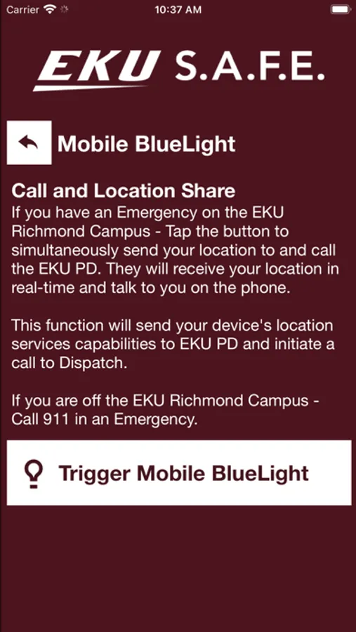 - Mobile Bluelight: Send your location to Eastern Kentucky University Dispatchers in real-time in case of a crisis