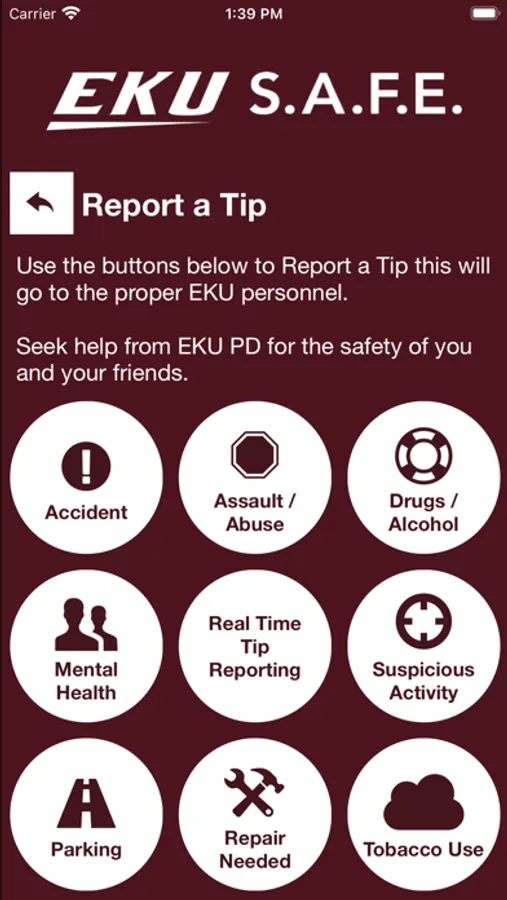 - Tip Reporting: Multiple ways to report a safety concern directly to Eastern Kentucky University.