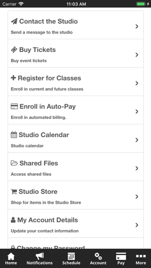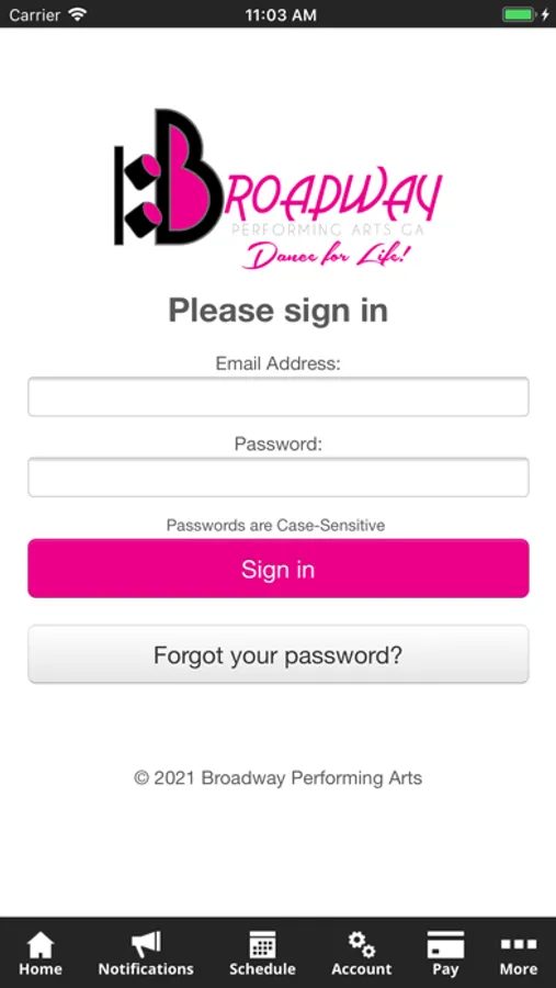 The BROADWAY PERFORMING ARTS app allows you to manage your account with ease, register for classes, purchase from the store, view class videos and sign up for special events. You'll also receive important notification about class changes, closings, registration openings, special announcements, and upcoming events.