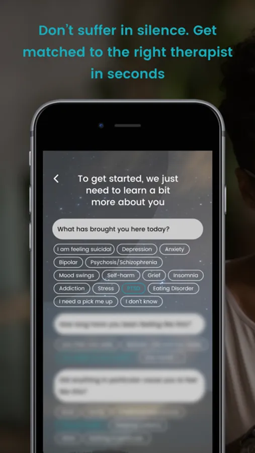 With the pherapeutic app, you don’t have to suffer in silence anymore. Providing you with therapy on demand, access to a therapist is within reach and accessible via the touch of a button. We know it can be difficult to take that first step so whether your suffering from depression, PTSD, Anxiety, Eating Disorders or other mental health issue, we have a range of therapists available at your point of crisis.