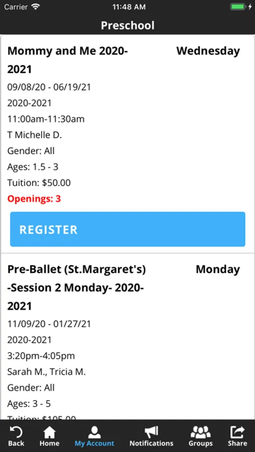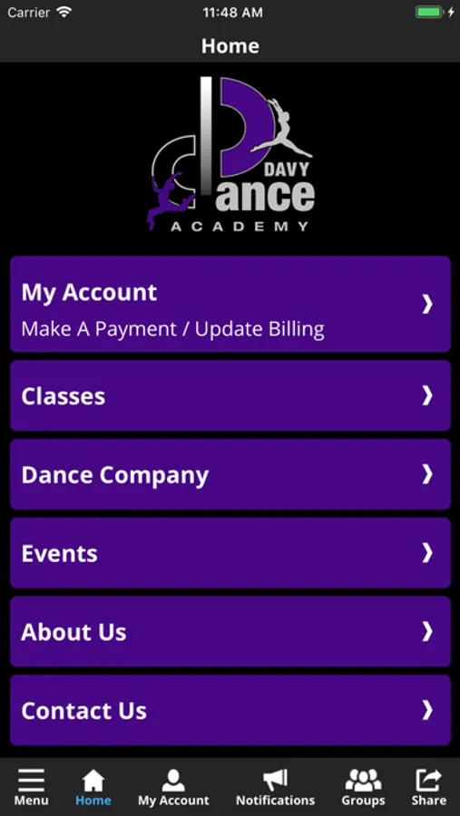 The Davy Dance Academy app allows you to manage your account with ease, register for classes, events, complete Covid Health forms and connect to your child's class via Zoom. You'll also receive important notifications about class changes, closings, registration openings, special announcements, and upcoming events.