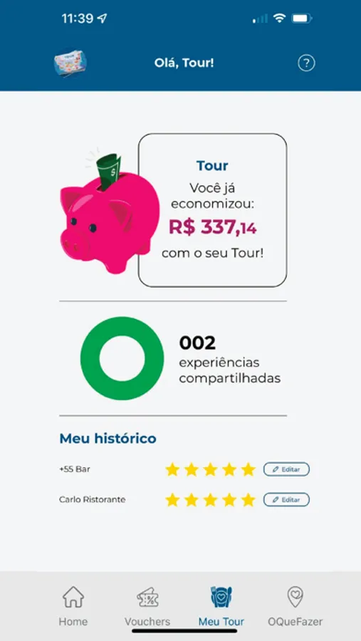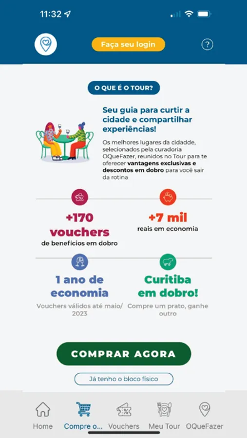Com o Tour, você tem acesso a mais de 200 vouchers incríveis e com benefícios em dobro - você compra um prato e ganha outro!