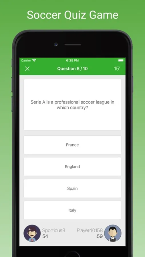 Soccer Fan Quiz is a trivia game for real soccer fans! Play a heads up or single player game and test your multiple choice answering skills. There are plenty of questions for you to answer, with more added every day!