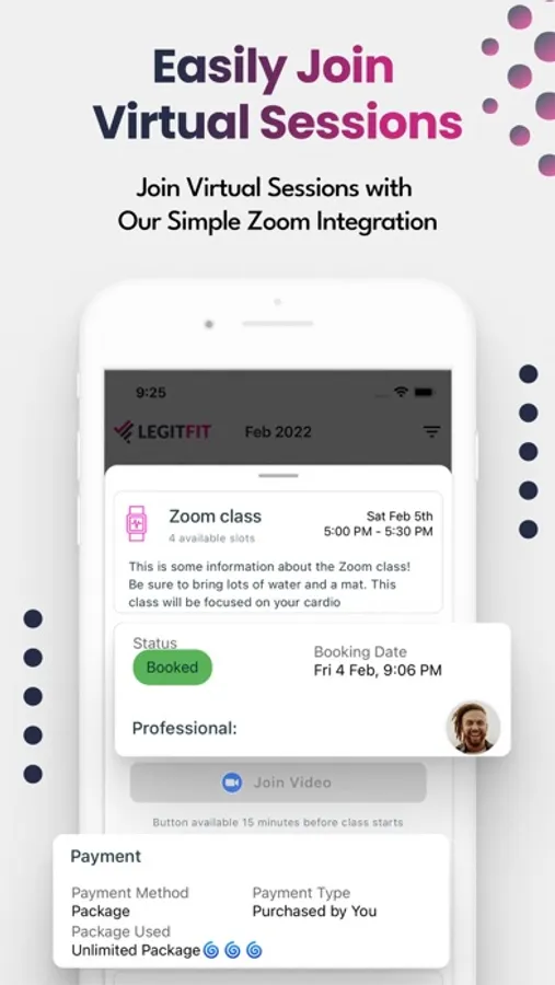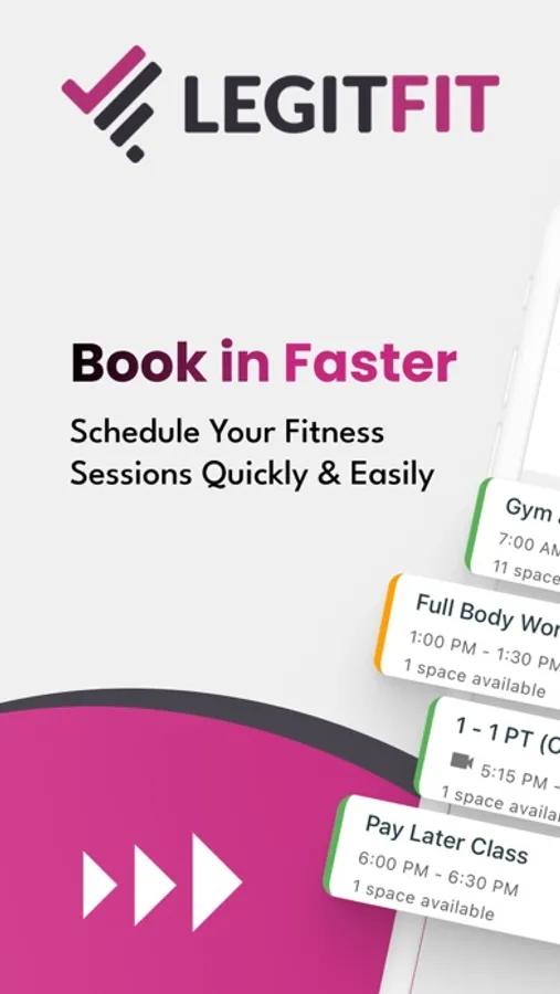 The most user friendly Fitness Booking System out there, LegitFit provides you with a very interactive way of booking your sessions, manage your services, securely purchase your products with Apple Pay, access your classes, check the status of your memberships and bookings via the QR code