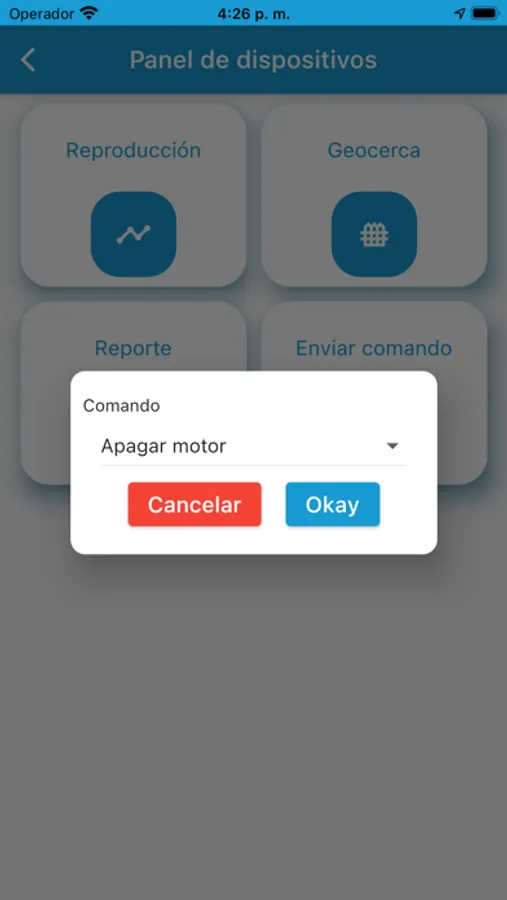 - Envío de comandos como inhabilitar/habilitar motor, activar/desactivar sistema de alarma.